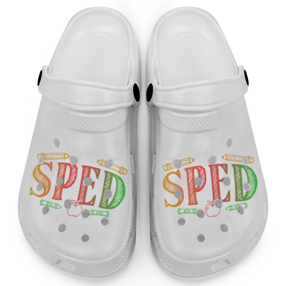 You're taking a peek at the product Be Nice To The Sped Teacher Special Education Cute Clogs For Kids WHITE belong theme Clogs at Printblur