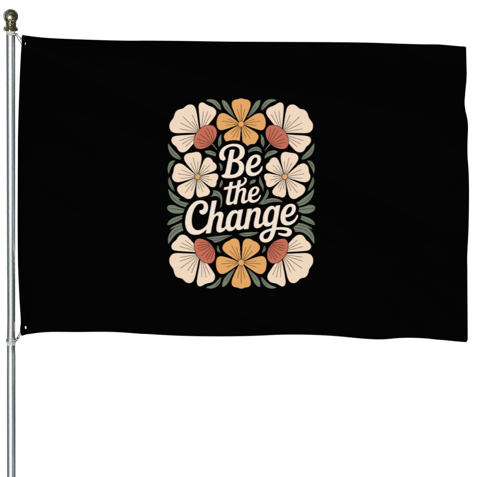Shop for impressive Be The Change Boho Flower Vintage Motivational House Flags or see more House Flags products right now on Printblur to enjoy your happiness!