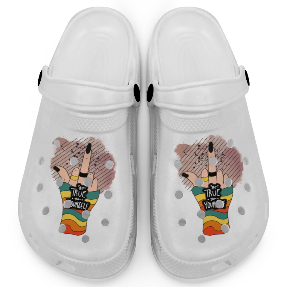 Buy eye-catching Be True To Yourself Middle Finger Clogs or see more Clogs products at Printblur shop now to explore many surprises from our shop!