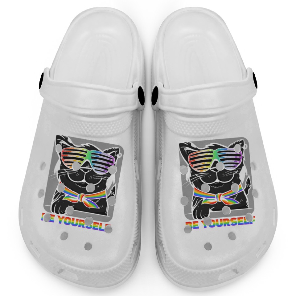 Be Yourself They'll Adjust Rainbow Cat Feline Clogs