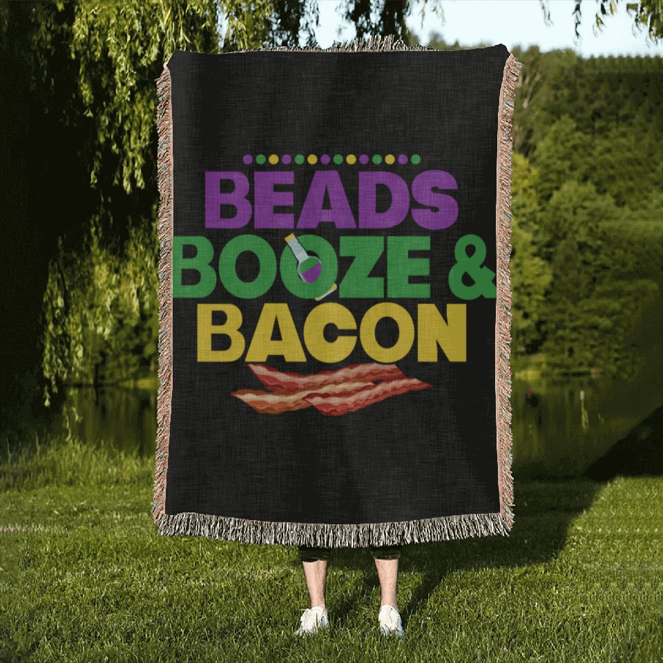 Shop for attractive Beads Booze & Bacon Carnival Mardi Gras Woven Blankets or see more Woven Blankets products on https://printblur.com right now!