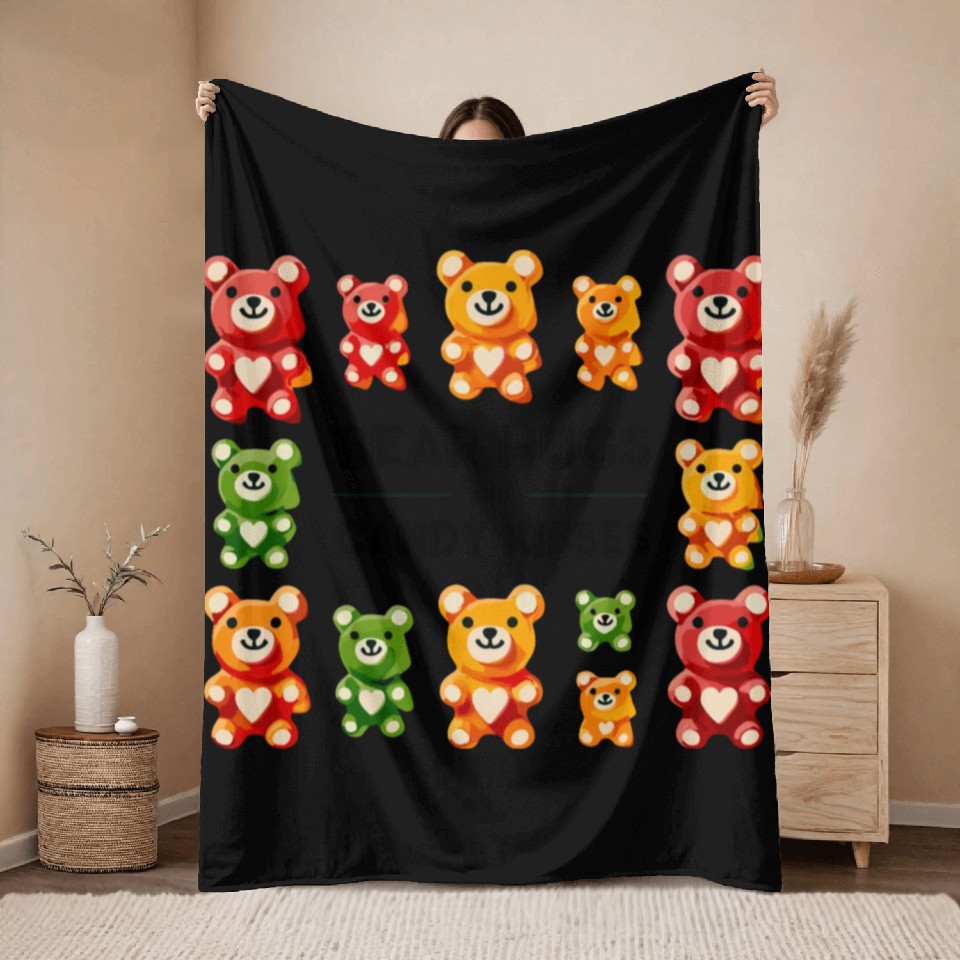 You are viewing one of the trendiest products Bear Hugs and Candy Kisses Gummy Bears Throw Blankets For Black belong theme Throw Blankets at Printblur