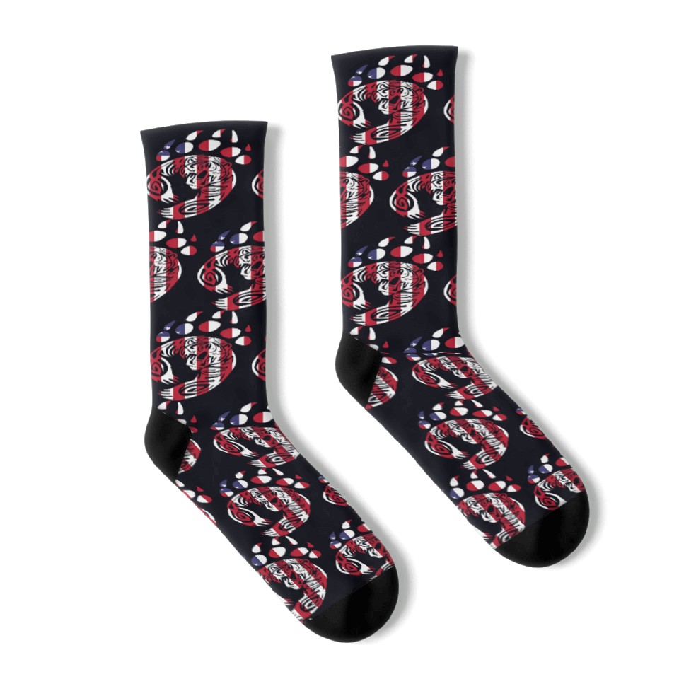 The item hot trend you're looking at is Bear Paw America USA Flag Merica US Stars Stripes Socks For Black belong theme Socks at Printblur
