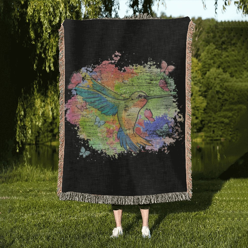 You are viewing an exclusive and elegant product Beautiful Bird Animal Colorful Hummingbird Woven Blankets For Black belong theme Woven Blankets at Printblur