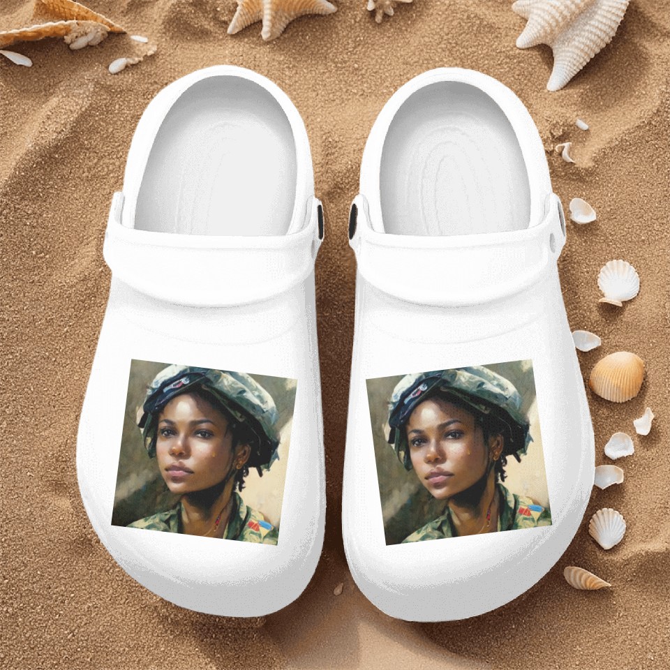 You're looking at the eye-catching product Beautiful US army combat medic painting Nurse Clogs For Men WHITE belong theme Nurse Clogs at Printblur