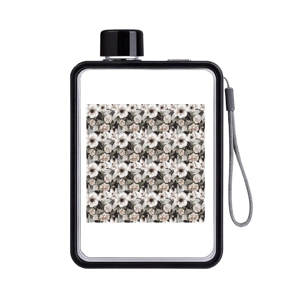 You are viewing an exclusive and elegant product Beige Sage Green Floral Pattern Flat Water Bottles For Black belong theme Flat Water Bottles at Printblur
