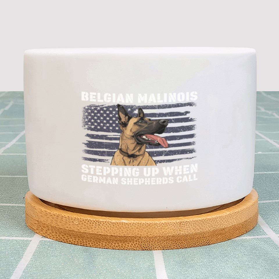 You are shopping for a stunning and trendy product BELGIAN MALINOIS STEPPING UP WHEN SHEPHERDS CALL Plant Pots For WHITE belong theme Plant Pots at Printblur
