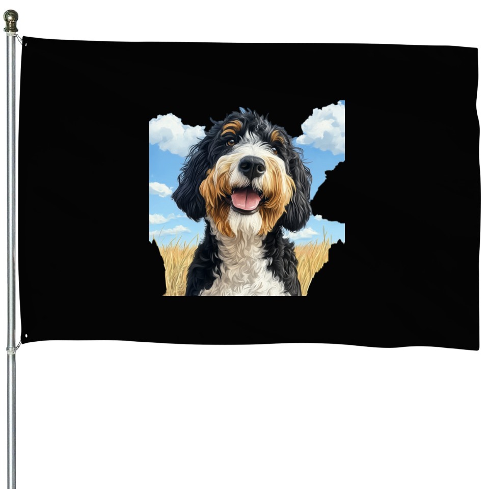 You are viewing an exclusive and elegant product Bernedoodle Field Nature Bernedoodle Watercolor 2 House Flags For Black belong theme House Flags at Printblur
