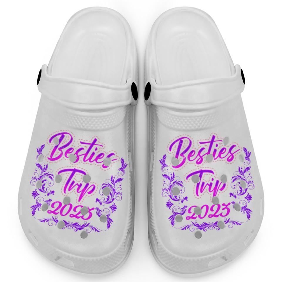 Buy eye-catching Besties Trip 2023 Vacation Friends Spring Break Clogs or see more Clogs products at Printblur shop now to explore many surprises from our shop!
