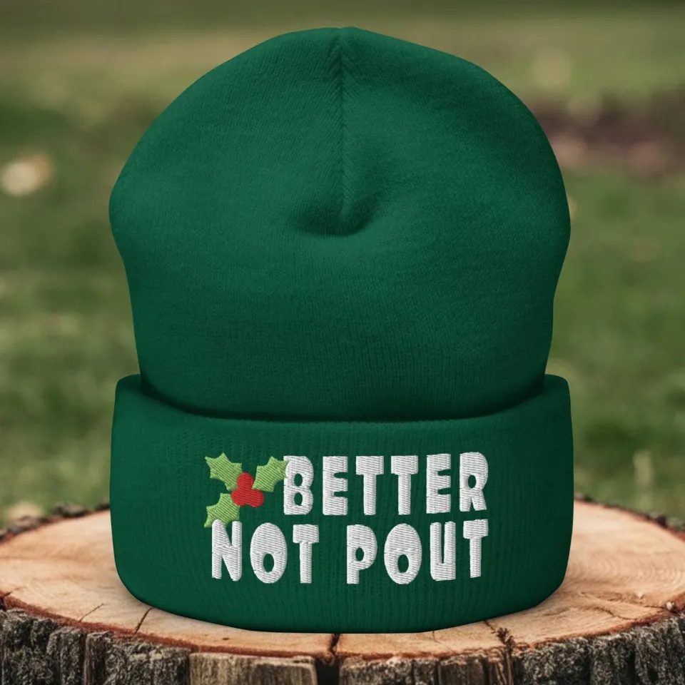 Own fascinating Better Not Pout Christmas Knit Beanie Hat for Men Women or see more Embroidered Knitted Hats products now from Printblur shop to enjoy your shopping time!