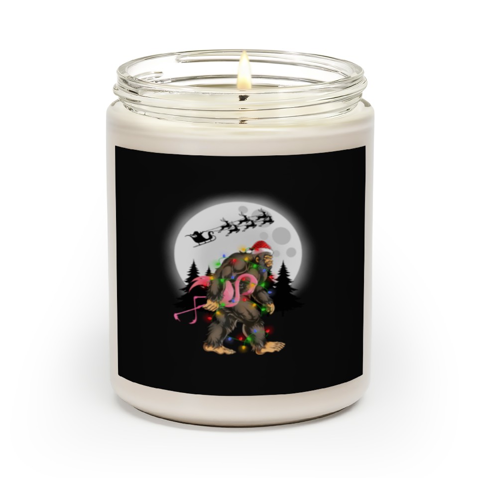 You're taking a peek at the product Bigfoot Carrying Flamingo Funny Sasquatch Scented Candles For Black belong theme Scented Candles at Printblur