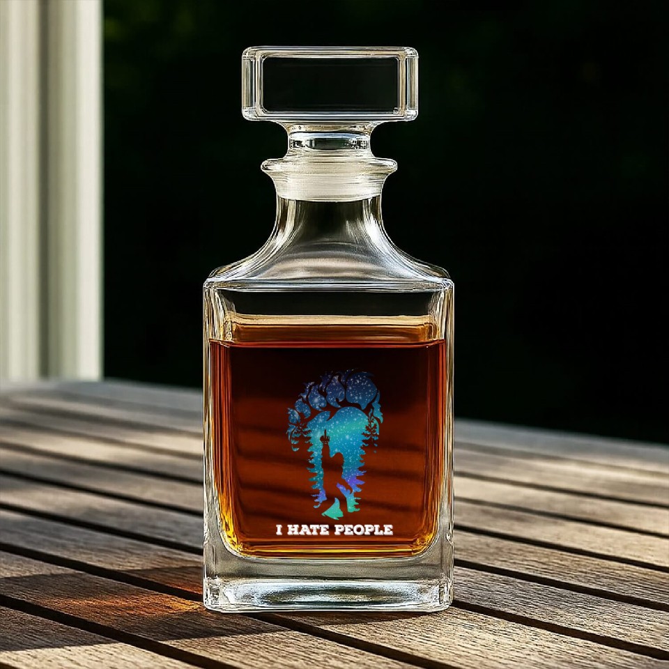 Shop for impressive Bigfoot Middle Finger I Hate People Sasquatch Whiskey Decanters or see more Whiskey Decanters products right now on Printblur to enjoy your happiness!