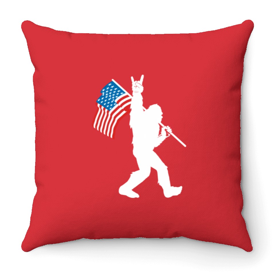You are viewing an exclusive and elegant product Bigfoot Rock And Roll Usa Flag For Sasquatch Belie Throw Pillows For Cover Only Red belong theme Throw Pillows at Printblur