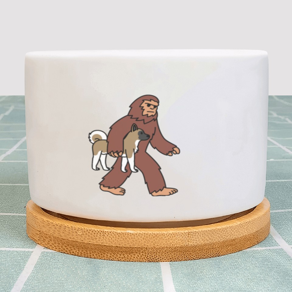 Shop for attractive Bigfoot Sasquatch Walking Akita Plant Pots or see more Plant Pots products on https://printblur.com right now!
