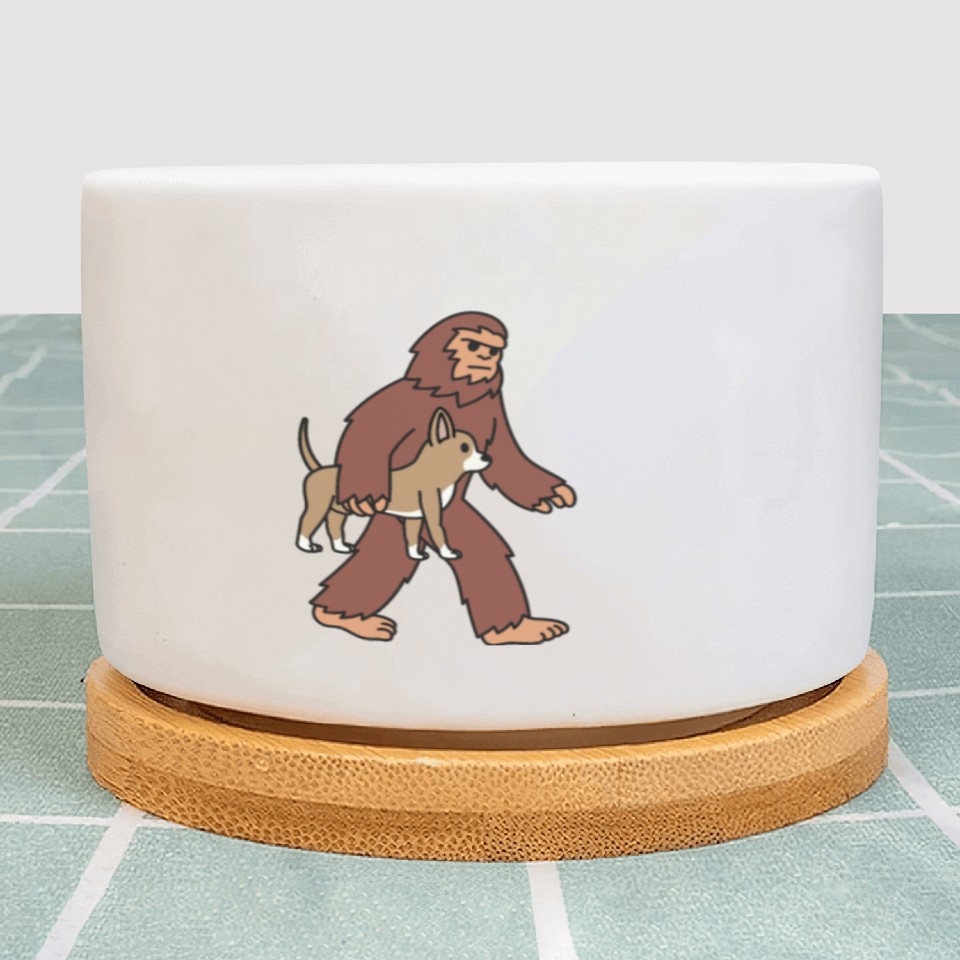 Shop for attractive Bigfoot Sasquatch Walking Chihuahua Plant Pots or see more Plant Pots products on https://printblur.com right now!