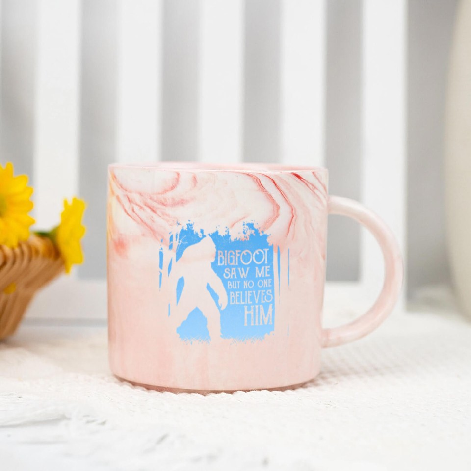 You are shopping for a stunning and trendy product Bigfoot Saw Me But No One Believes Him Marble Mugs For Pink belong theme Marble Mugs at Printblur