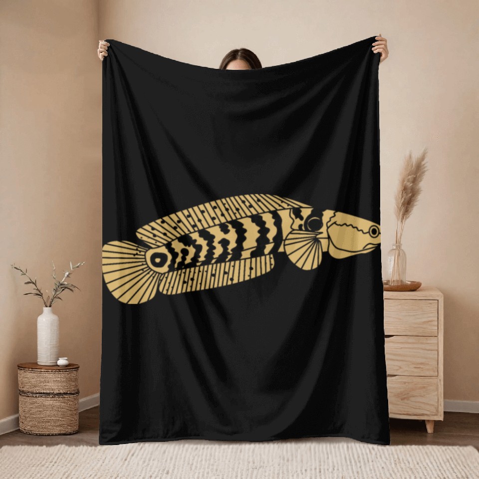 Buy eye-catching black and gold channa snakehead fish illustrations Throw Blankets or see more Throw Blankets products at Printblur shop now to explore many surprises from our shop!