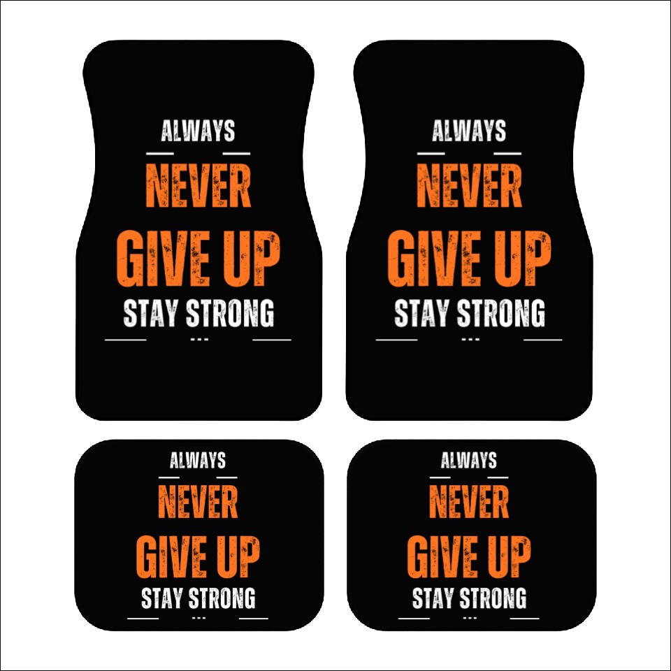 Own fascinating black and orange typography never give up stay sto Car Mats or see more Car Mats products now from Printblur shop to enjoy your shopping time!