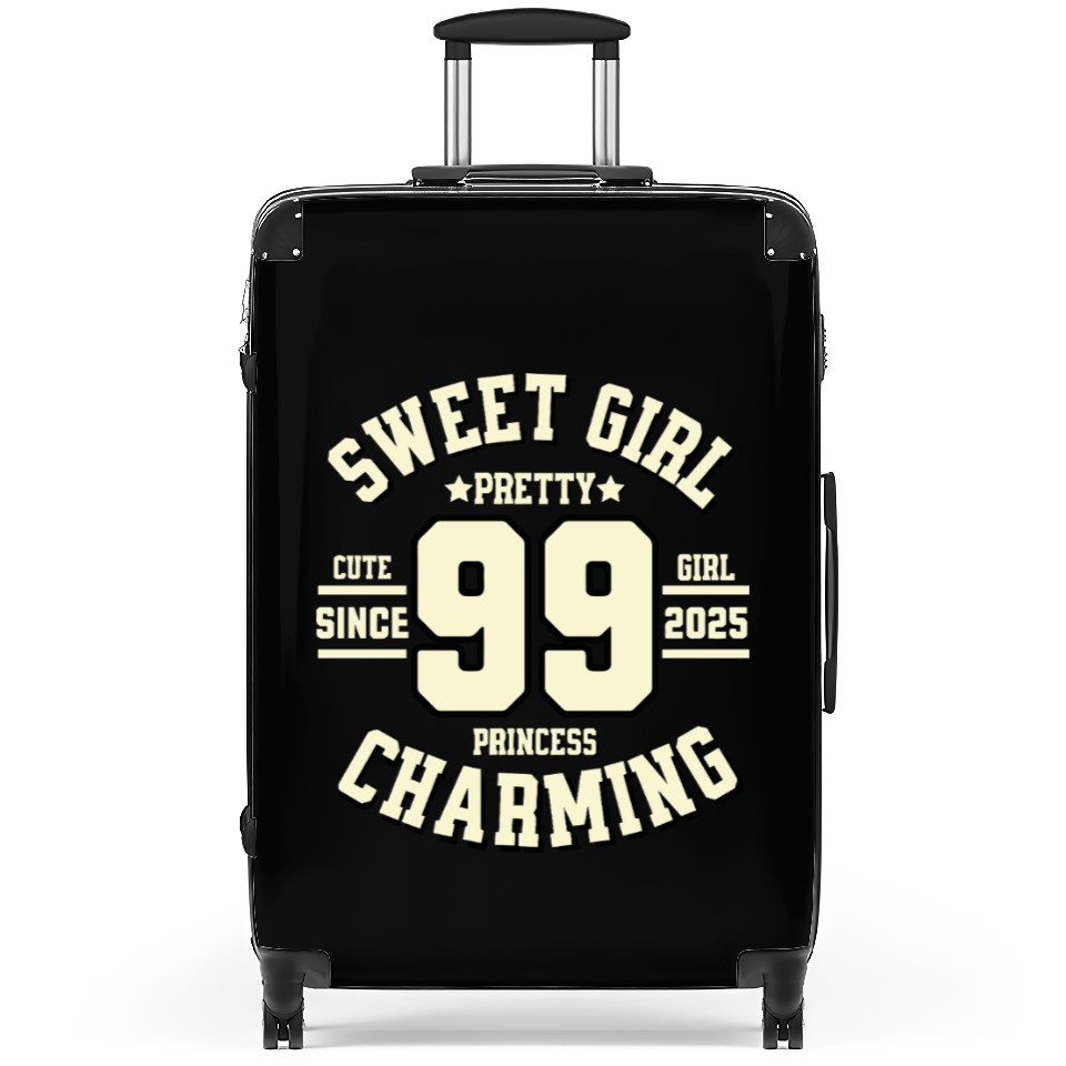 You're searching for a one-of-a-kind product Black And White A Sweet Girl With 99 Charming Suitcases For Black belong theme Suitcases at Printblur