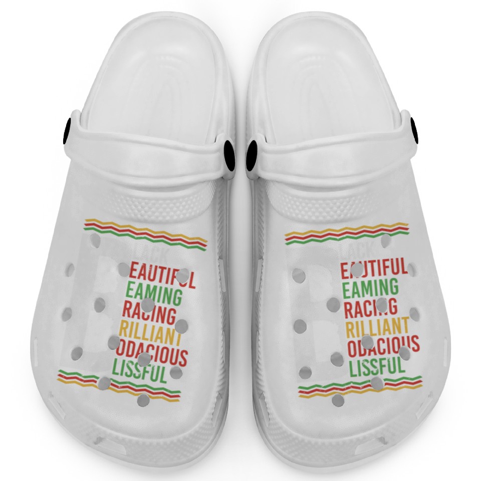 Shop for impressive Black Beautiful Beaming Bracing Brilliant Clogs or see more Clogs products right now on Printblur to enjoy your happiness!