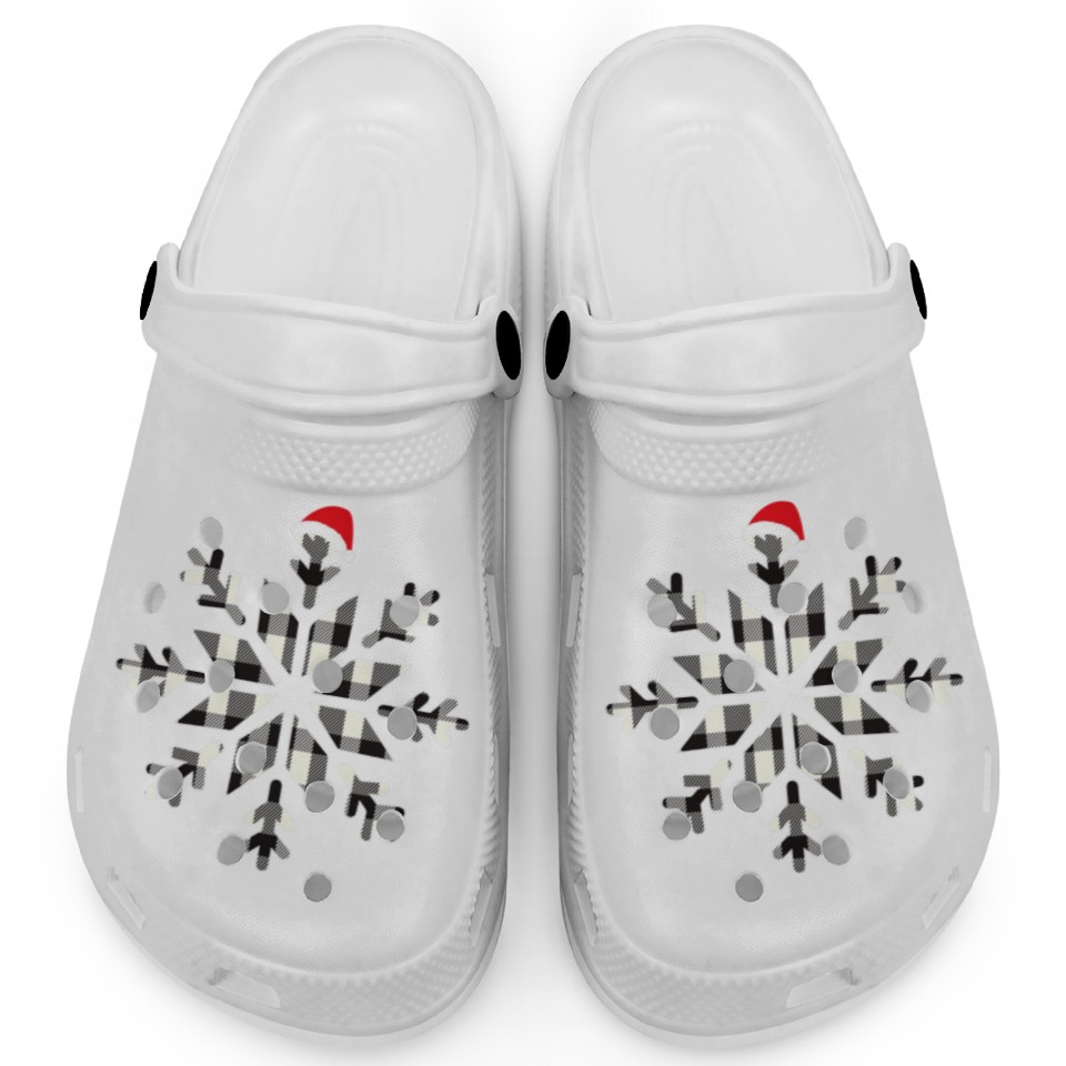 You're searching for a one-of-a-kind product Black Christmas Buffalo Plaid Snowflakes Santa hat Clogs For Kids WHITE belong theme Clogs at Printblur
