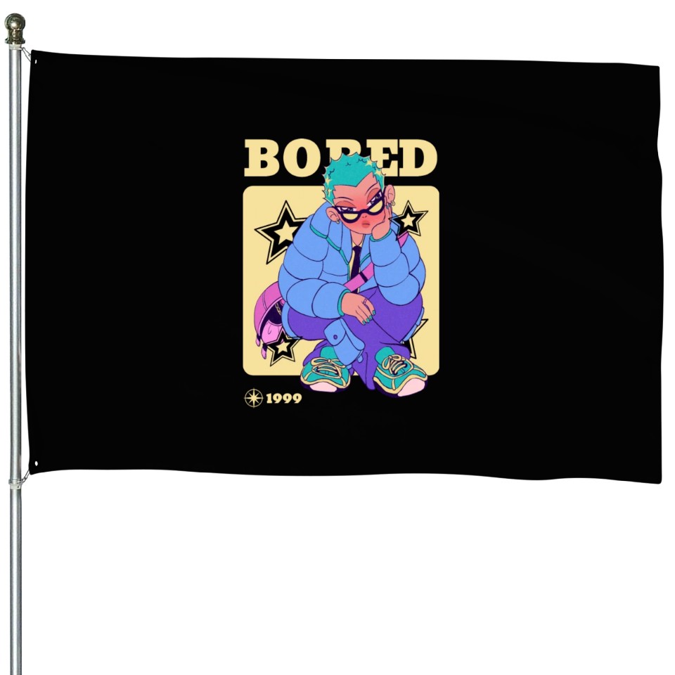 Buy eye-catching Black Cream Blue Y2K Anime Illustrated Bored House Flags or see more House Flags products at Printblur shop now to explore many surprises from our shop!