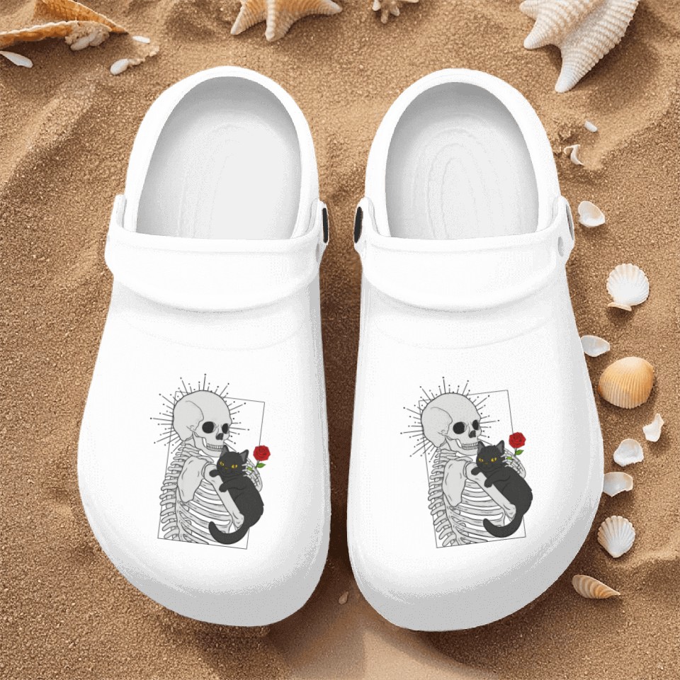 You are viewing one of the trendiest products Black Demonic Cat Skeleton Hail Satan Death Metal Nurse Clogs For Men WHITE belong theme Nurse Clogs at Printblur