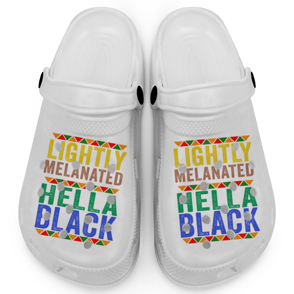 Shop for attractive Black History Lightly Melanated Hella Black Pride Clogs or see more Clogs products on https://printblur.com right now!