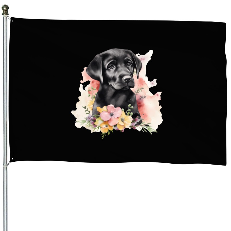 Shop for attractive Black Lab Dog Watercolor Floral House Flags or see more House Flags products on https://printblur.com right now!
