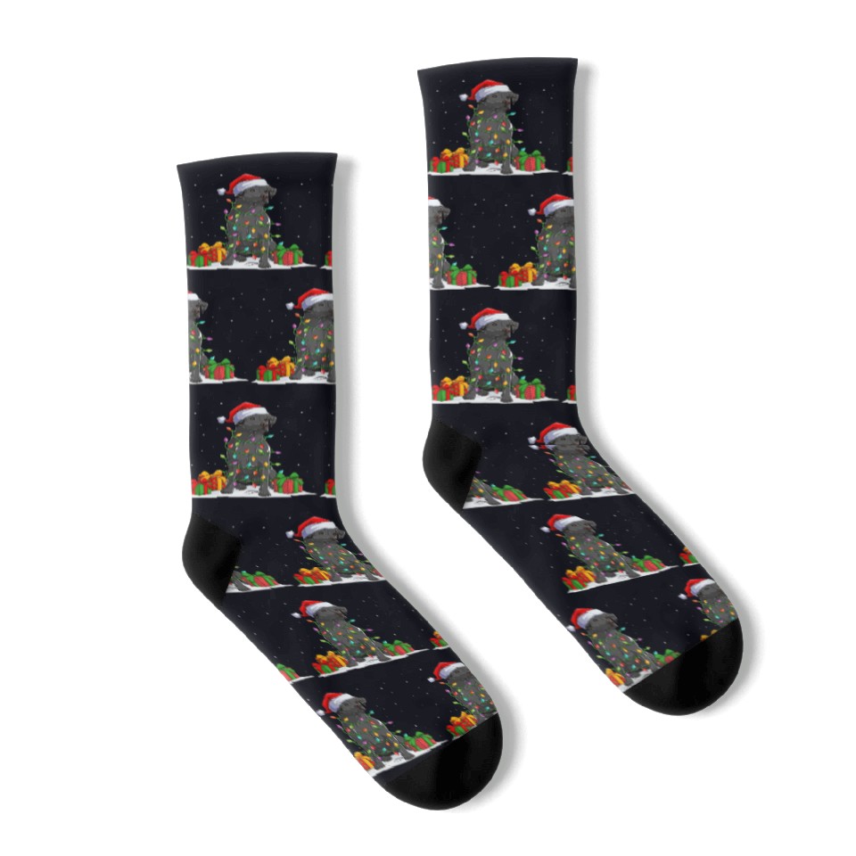 You're looking at the eye-catching product Black Lab Labrador Christmas Lights Pajama Dog Socks For Black belong theme Socks at Printblur