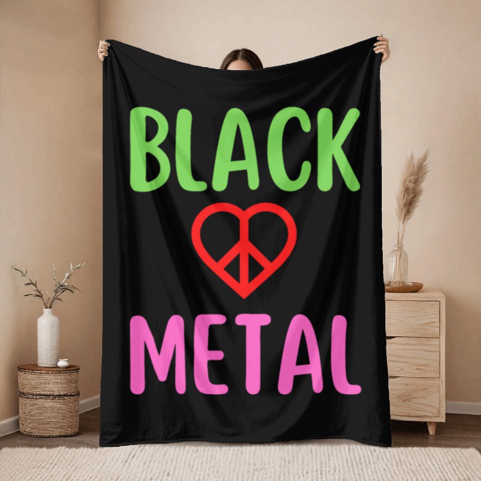 You're taking a peek at the product Black Metal Peace Love Symbol Throw Blankets For Black belong theme Throw Blankets at Printblur