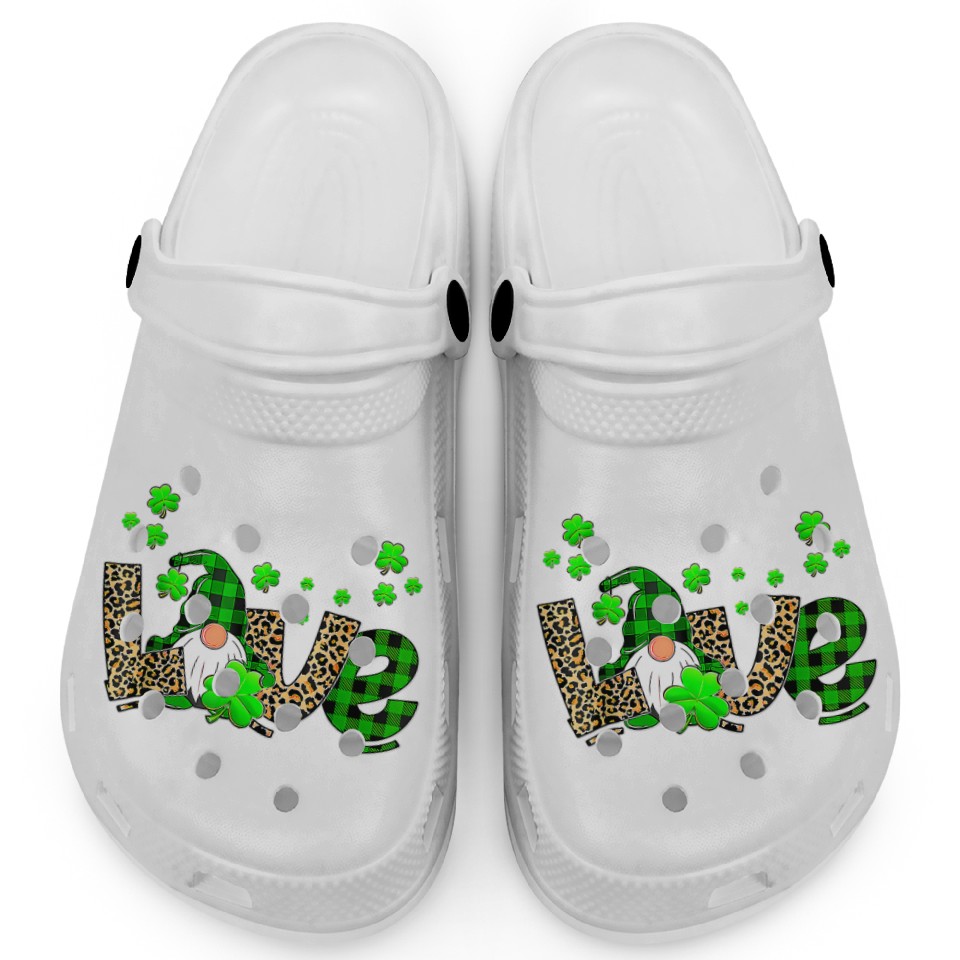 You're taking a peek at the product Bleached Love St Patric Day Gnomes Shamrock For Clogs For Kids WHITE belong theme Clogs at Printblur