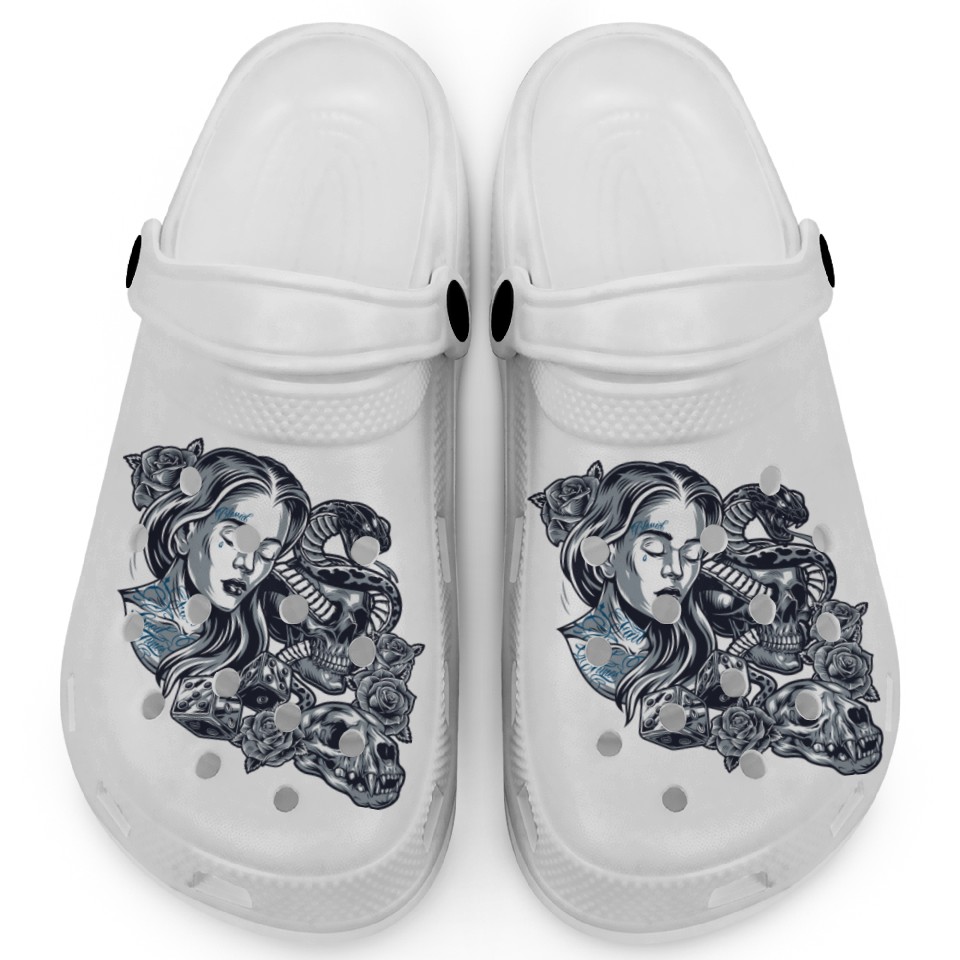 You're taking a peek at the product Blessed Chicano Vintage Street Art Graphic Clogs For Kids WHITE belong theme Clogs at Printblur