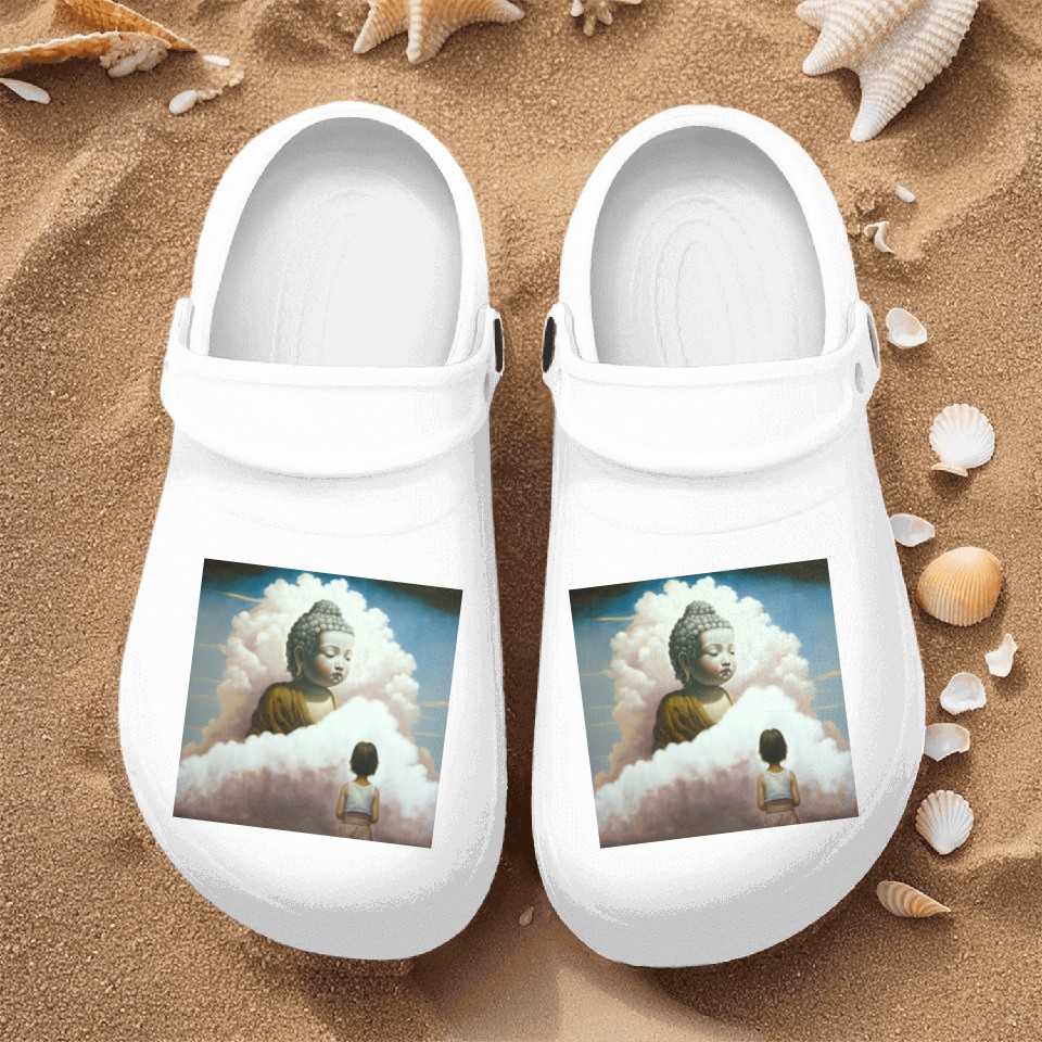 You are viewing an exclusive and elegant product Blessings of the Little Buddha Nurse Clogs For Men WHITE belong theme Nurse Clogs at Printblur