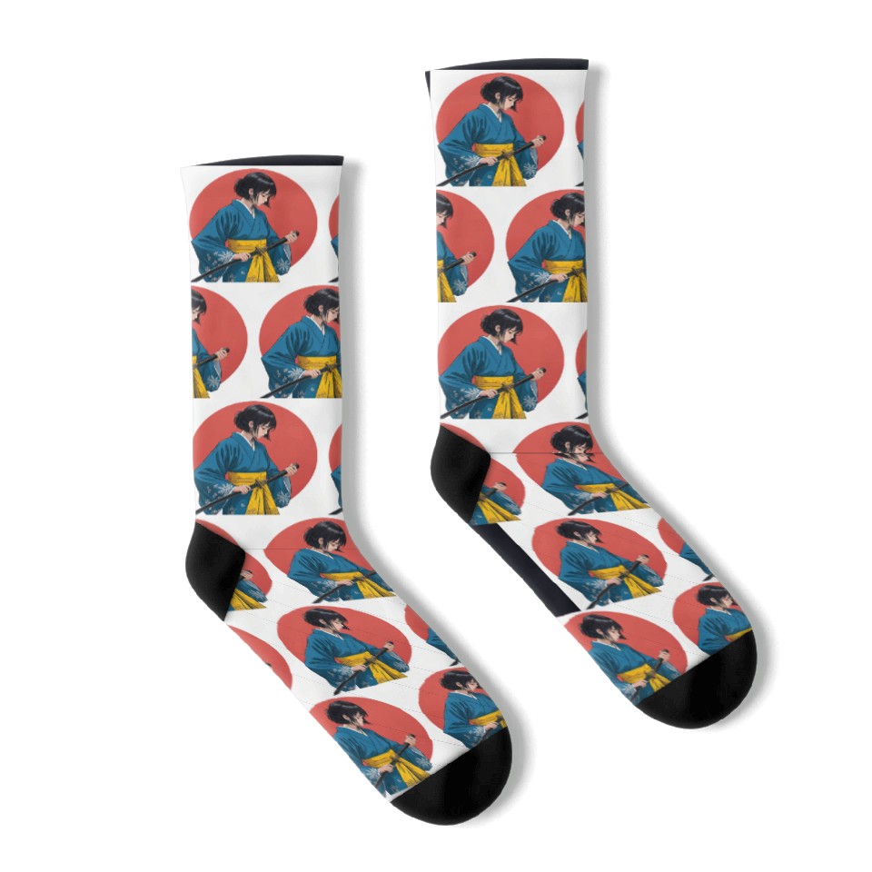 Buy eye-catching Blossom and Blade: Kimono-Clad Warrior Girl, Japan Socks or see more Socks products at Printblur shop now to explore many surprises from our shop!