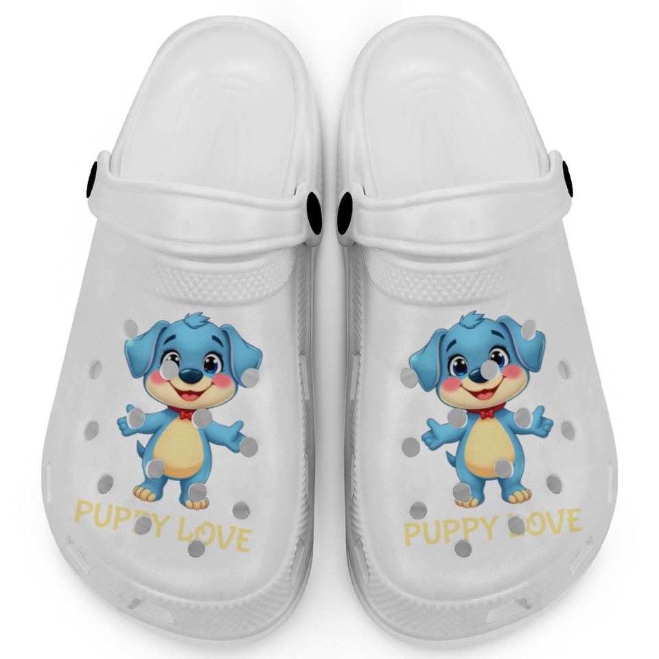You are viewing one of the trendiest products Blue Puppy Love Cartoon - Playful Pet Character Clogs For Kids WHITE belong theme Clogs at Printblur