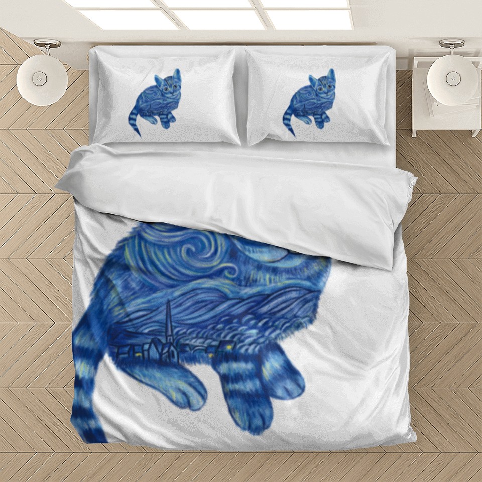 You're looking at the eye-catching product Blue Van Gogh Starry Night Bengal Cat Illustration Bedding Sets For WHITE belong theme Bedding Sets at Printblur