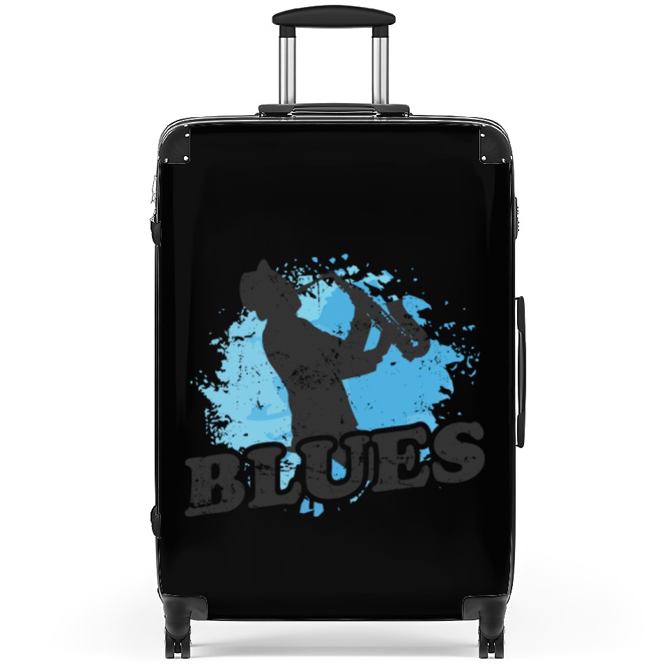 You are viewing an exclusive and elegant product Blues Saxophone Music Trumpet Suitcases For Black belong theme Suitcases at Printblur