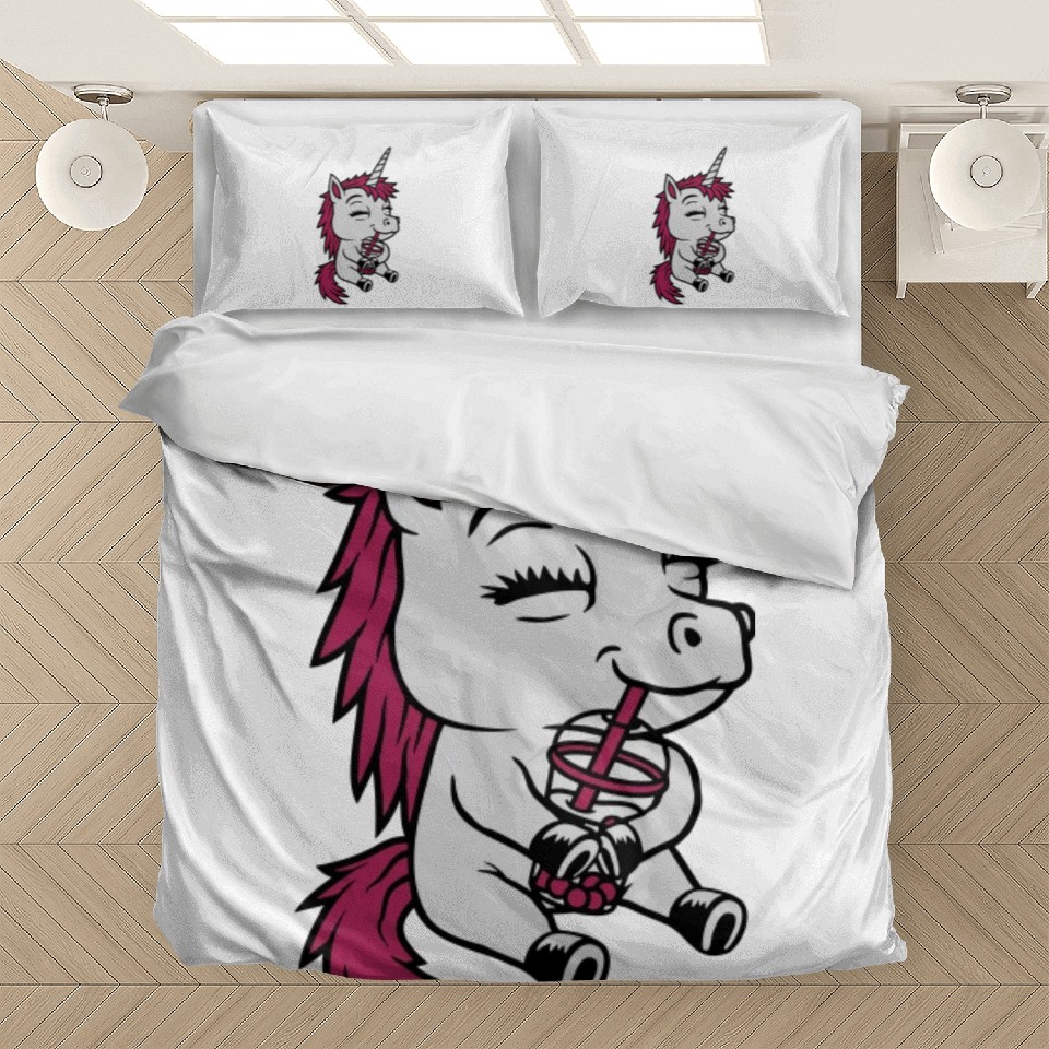 Own fascinating Boba tea drinking unicorn Bedding Sets or see more Bedding Sets products now from Printblur shop to enjoy your shopping time!