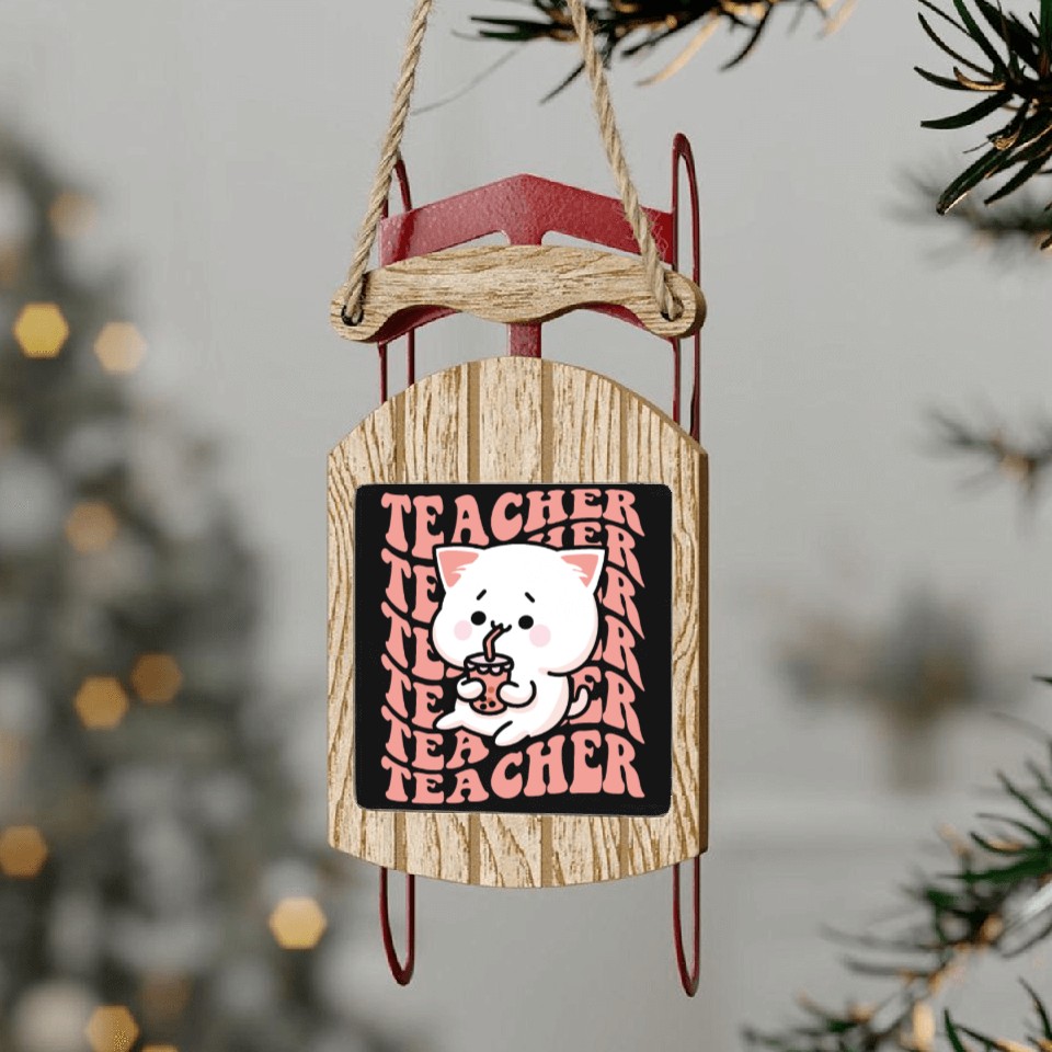 Boba Tea Teacher Cute Kawaii Cat Back To School Sled Ornaments