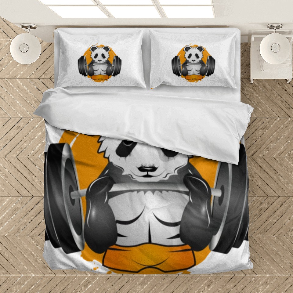 You are shopping for a stunning and trendy product Bodybuilder panda bear with barbell in the gym Bedding Sets For WHITE belong theme Bedding Sets at Printblur