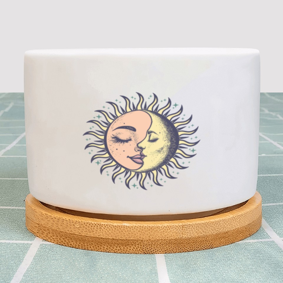 You are seeing a unique and impressive product Boho Sun Moon Spirituality Sun Face Plant Pots For WHITE belong theme Plant Pots at Printblur