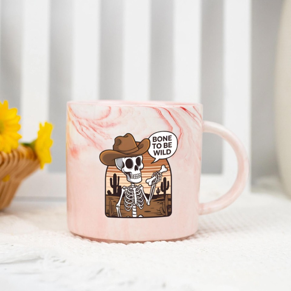 You are viewing an exclusive and elegant product Bone to be Wild Funny Skeleton Wild West Marble Mugs For Pink belong theme Marble Mugs at Printblur