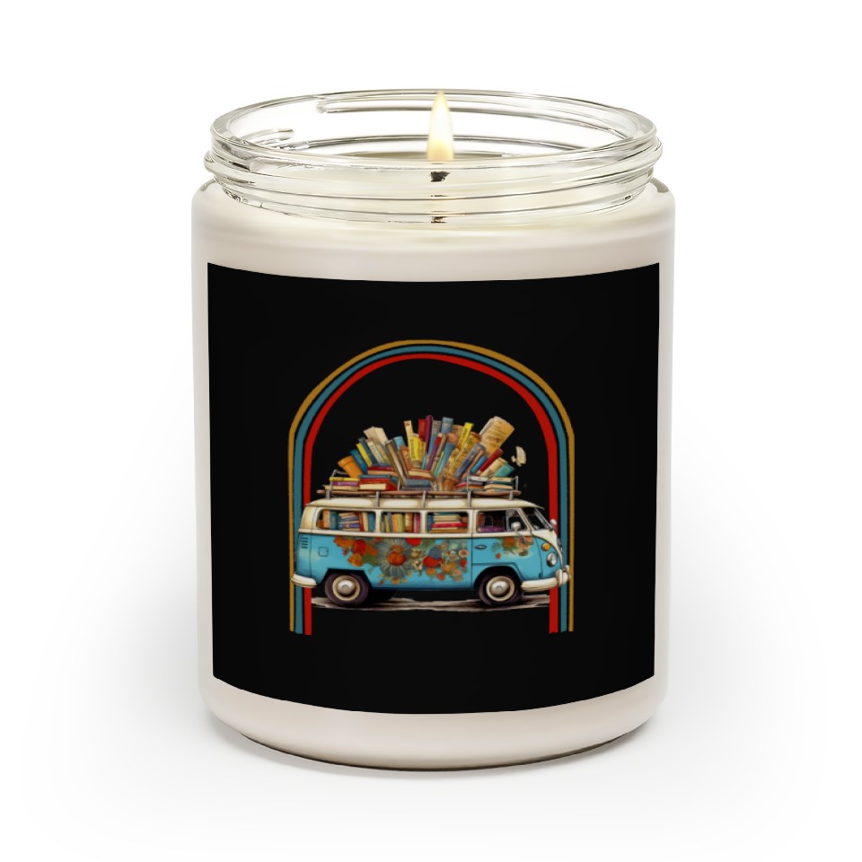 You're searching for a one-of-a-kind product Books Reading English Teacher Hippie Van Retro Scented Candles For Black belong theme Scented Candles at Printblur