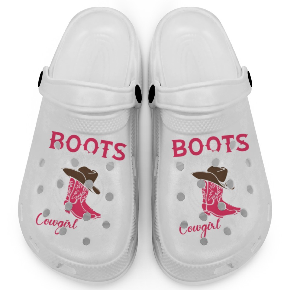 The item hot trend you're looking at is Boots And Bling It's A Cowgirl Thing Clogs For Kids WHITE belong theme Clogs at Printblur