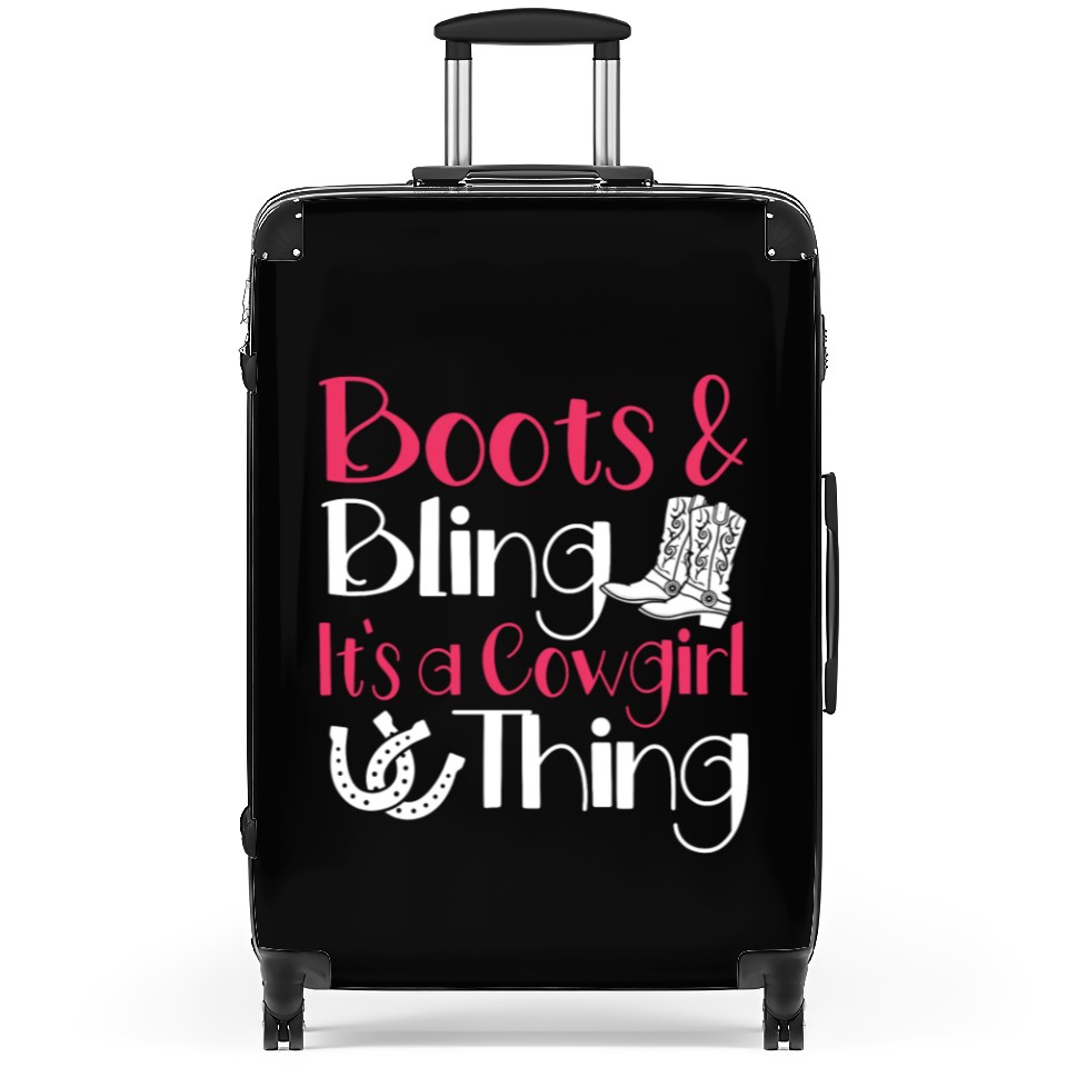 You're searching for a one-of-a-kind product Boots And Bling It's A Cowgirl Thing Suitcases For Black belong theme Suitcases at Printblur