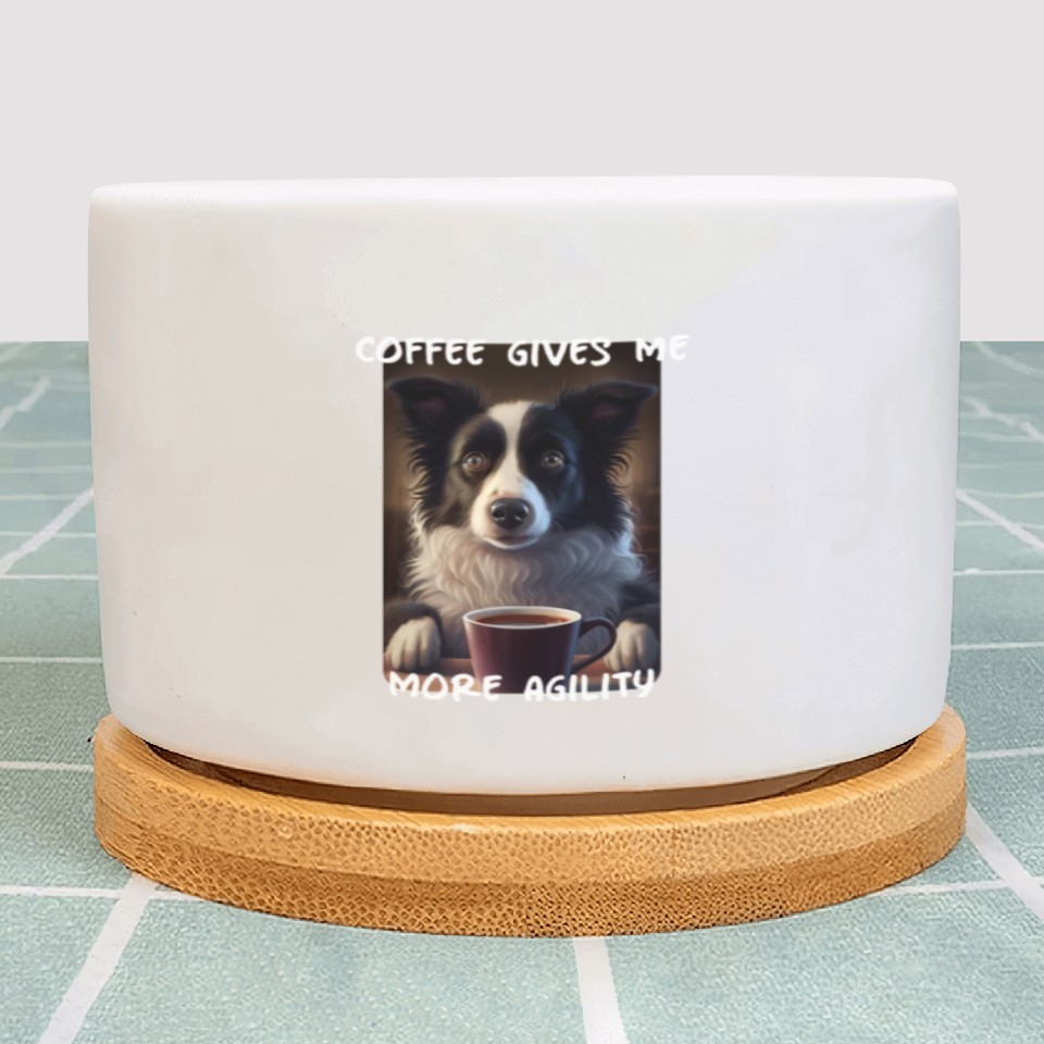 You're searching for a one-of-a-kind product Border Collie - Coffee Gives Me More Agility (en) Plant Pots For WHITE belong theme Plant Pots at Printblur