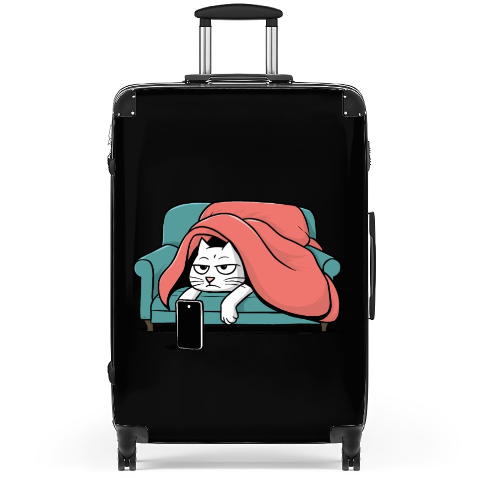 You are viewing an exclusive and elegant product Bored Cat on Couch With Smart Phone Suitcases For Black belong theme Suitcases at Printblur