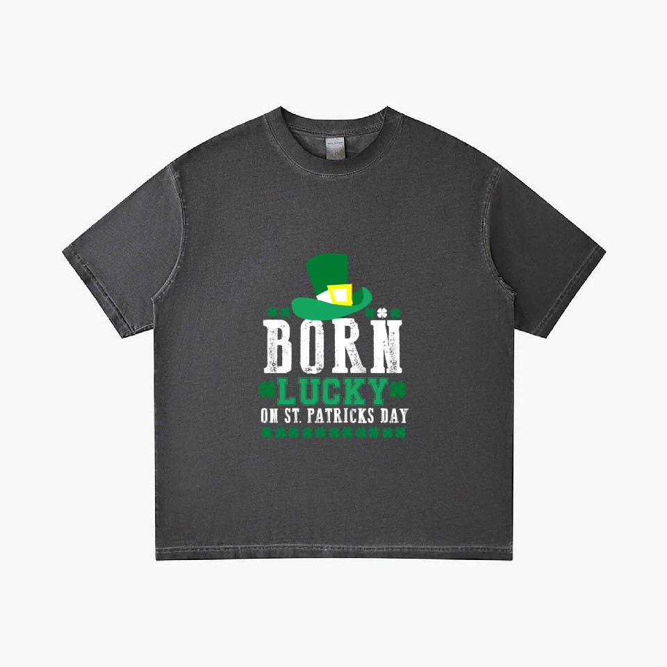 The product unique design you searched for is Born Lucky on St Patricks Day Birthday Toddler Gradient T Shirts For Men Washed Black belong theme Gradient T-Shirts at Printblur