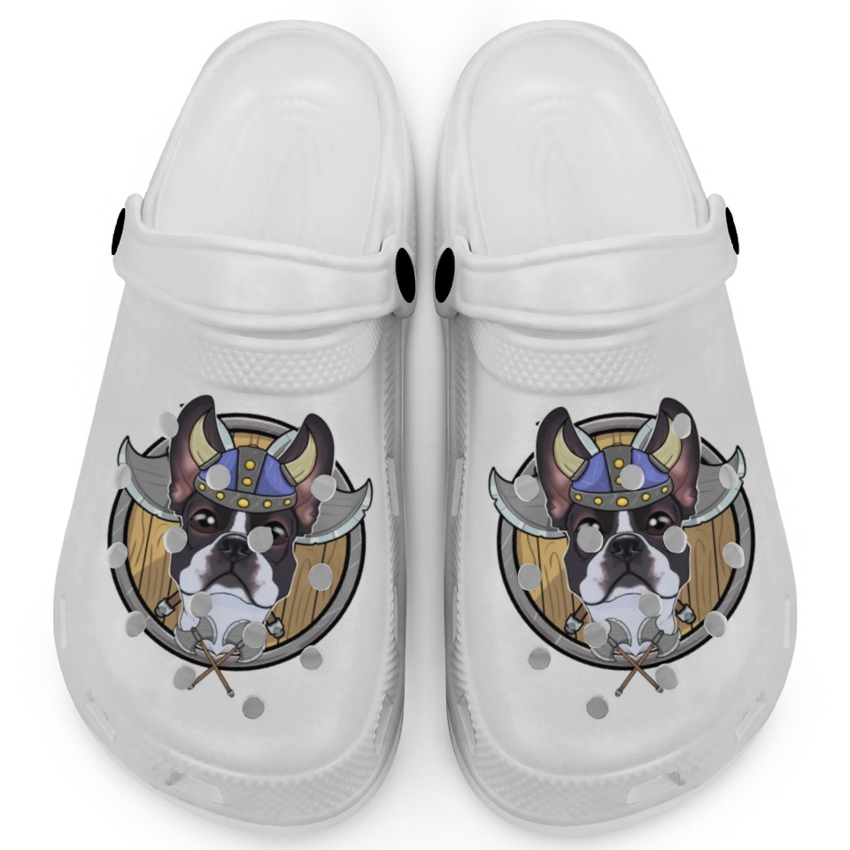 You are seeing a unique and impressive product Boston Terrier I Valhalla I Viking Clogs For Kids WHITE belong theme Clogs at Printblur